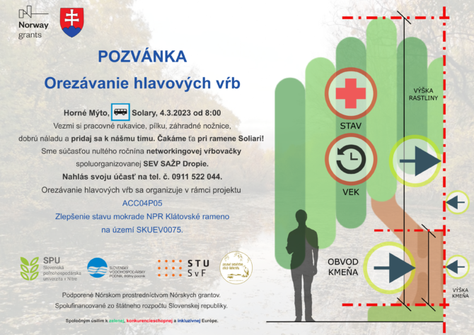 4. marca bola organizovaná akcia orezávania vŕb. Zúčastnili sa na nej pracovníci SVP,SPU, STU, CHKO Dunajské Luhy, naše občianske združenie a ďalší doborovoľníci. Podľa slov odborníkov, keď sú vŕby orezávané, tak majú dlhšiu životnosť. V danej aktivite by chceli naďalej pokračovať aj budúce roky. Veľmi pekne ďakujeme každému, kto sa pričinil na skrášlení našeho kraja a zároveň pomohol týmto honosným stromom žiť dlhšie. Naše občianske združenie vedelo na tejto akcii znova použiť nástroje, ktoré boli nakúpené z Nórskych grantov.