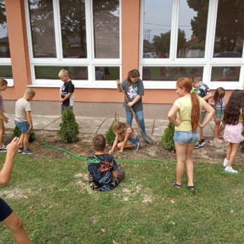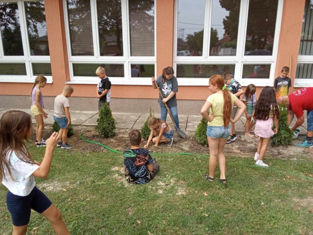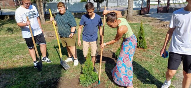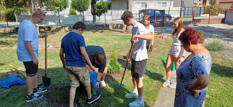 5. september - Vo štvrtok sme zasadili 5-5 túj do ZŠ v Jahodnej, ktorí získali druhý najväčší počet bodov celkovo v hre (178). Keďže pani učiteľka Klaudia Szüllőová, ktorá tieto úlohy robila v školskom roku 2023/24 išla na materskú, ceny 5 túj, 1 žabie taxi pexeso, 1 nerezovú pamätnú tabuľku a diplom prevzali druháci ZŠ s ich pani učiteľkou. V ZŠ Mateja Korvina v Doľnom Štály si deviataci stromy sami zasadili, a cenu prevzala pani riaditeľka školy, a učiteľka Hegyi Andrea, ktorá úlohy riešila za ich školu. Oni dosiahli najviac bodov v obtiažnosti hry za ZŠ druhého stupňa (141). Ďakujeme za výbornú prácu všetkých!