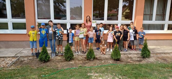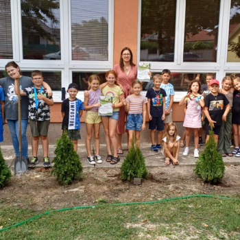 6. spetember - V piatok sme zasadili posledných 10 stromčekov. 5 dostala materská škola v Hornom Mýte, ktoré prevzal spolu s pexesom, diplomom a nerez tabuľkou pán starosta Almási Ernő a pani riaditeľka Venkovics Semsei Erika. Posledných 5 túj zasadili deti v Zš Trstice. Práve oni získali najviac bodov (206) v hre v školskom roku 2023/24 s riadením a výbornou prácou pani učiteľky Nikola Némethová. Gratulujeme víťazom!