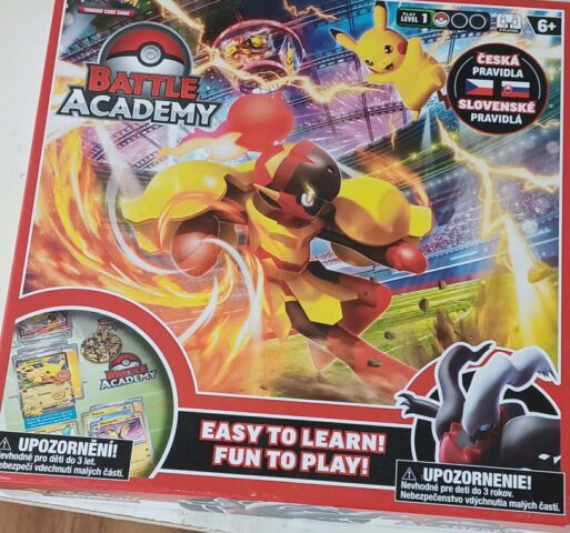 - Pokemon Battle Academy a képen látható doboz, és a képen látható 3 paklival lehet játszani. A paklikat sorsolás útján osztjuk ki. 3 játék, minden győzelem 3 pont, minden veszteség 0 pont.